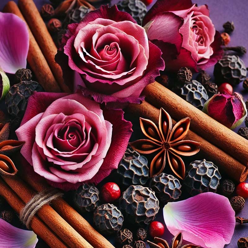 - Mellemnoter: Rose og olibanum