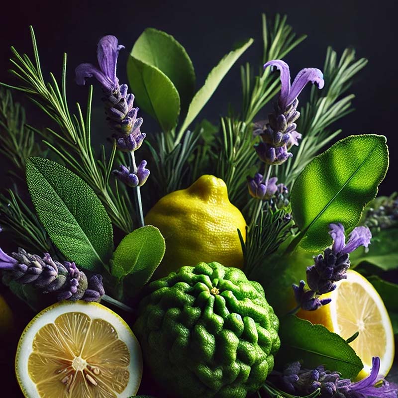 - Topnoter: Bergamotte og citronblade