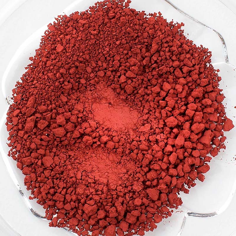 Indhold: Iron Oxide Red CI 77491. Partikelstørrelsen er ca. 1 μm.